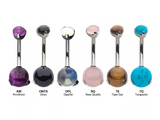 Invictus 14g Titanium Internally Threaded with 3 Prong Set Double Stone Fixed Bottom Navel Curve.