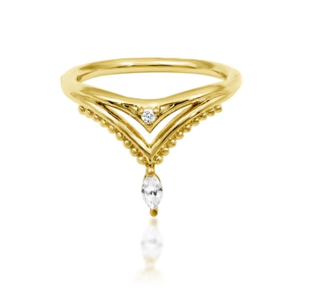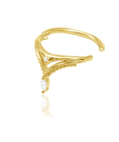 Junipurr’s 14kt gold Reina hinged segment Ring. It is measured at 13.1mm x 9.4mm. Available in yellow and white gold.