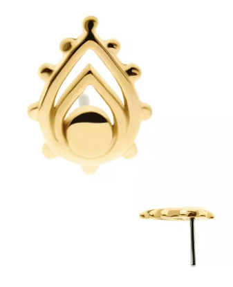 Invictus 14Kt Yellow Gold Threadless Beaded Edge Pear Top.